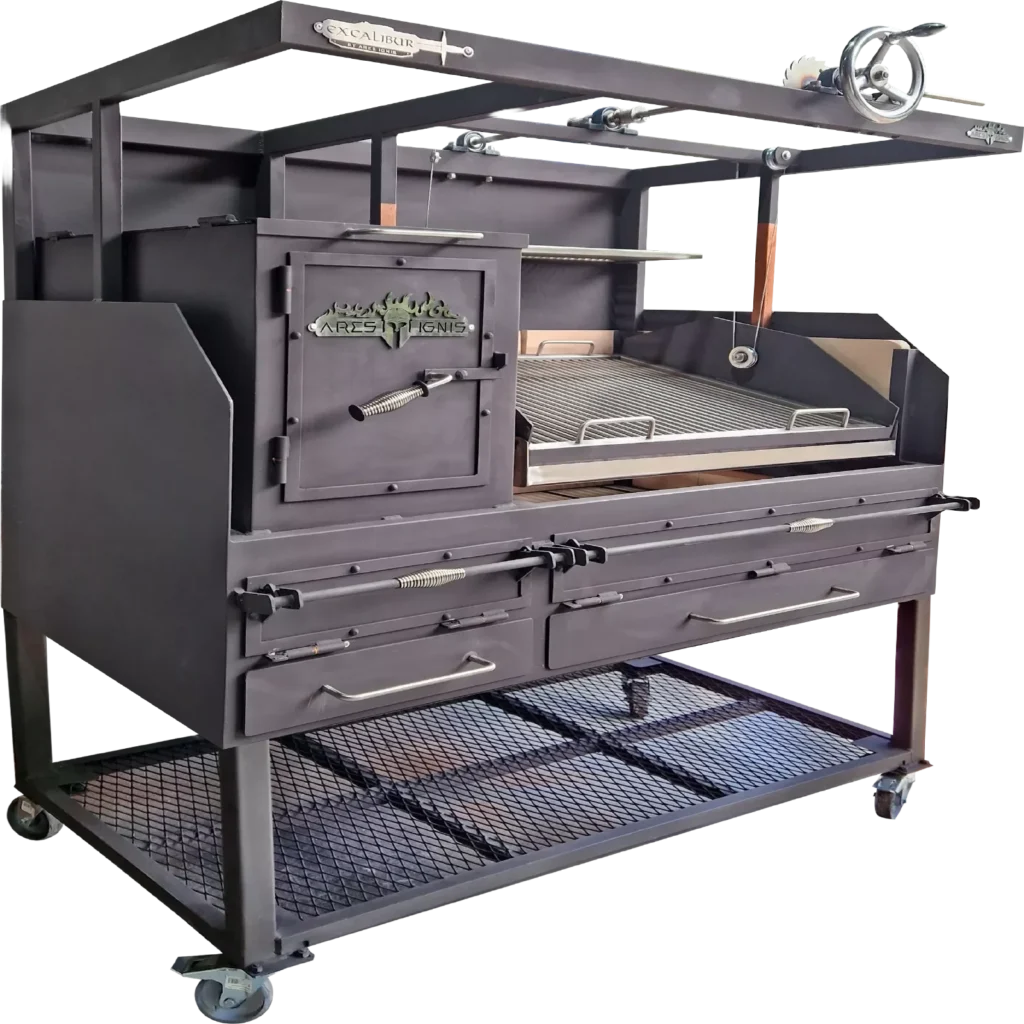 Función premium pensada para ahumar y asar piezas de gran tamaño como cerdos enteros, costillares o perniles, garantizando alta capacidad de producción.